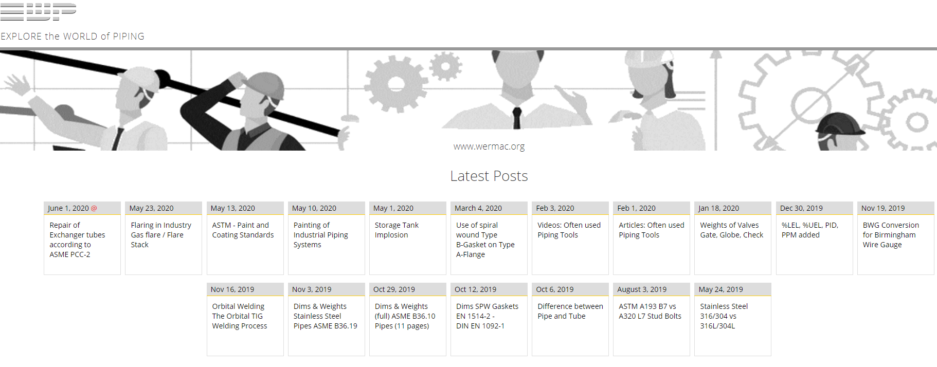 ▶http://www.wermac.org/index.html : PIPE, FITTING, ISO, P&ID, DRAWING SYMBOLs, PIPE SPOOL, MATERIAL ... NDE 기초 해외 사이트 ▶https://blog.naver.com/gangplank : 배관설계, VBA for Microstation, CAD,Excel,Revit