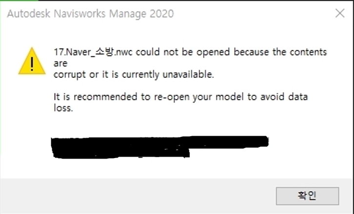 나비스웍에서 NWC 파일을 열거나 추가시 오류가 날 떄