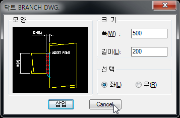 덕트의 곡관중 입구측과 출구측이 상이한 모양의 덕트 곡관을 작성할 수 있으며 덕트 폭을 알수 없을 경우 라인을 선택하여 작성할수 있습니다.