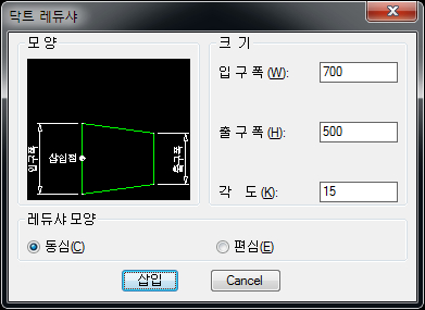 동심,편심 모양을 선택할 수 있으며 레듀샤의 각도를 입력하여 작성할 수 있습니다.