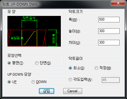 덕트의 UP-DOWN되는 부위를 작성하는 기능입니다.