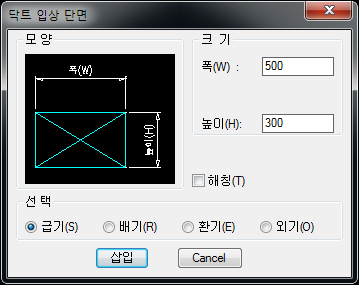 덕트의 입상 단면 모양(급기,배기,환기,외기) 을 작성하는 기능입니다.