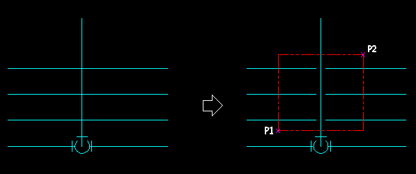 계통도에서 가로선과 세로선이 교차되는 부위를 임의 크기로 절단하여 절단하는 기능입니다.