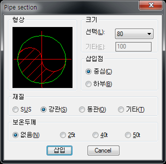 이 기능은 블럭을 이용하여 사용하므로 레이어나 색상을 변경하고자 할때는 “PIPE” 폴더안에 C-SEC.DWG,B-SEC.DWG 파일을 열기하여 수정합니다.
