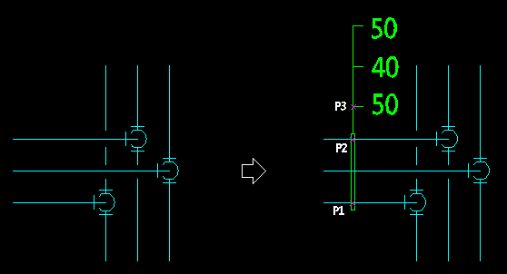 배관 라인 임의의 위치에 배관명칭을 기입하는 경우 여러개의 배관 라인에 배관명칭을 기입하는 동시에 일정한 간격으로 배관라인을 잘라주는 기능입니다.